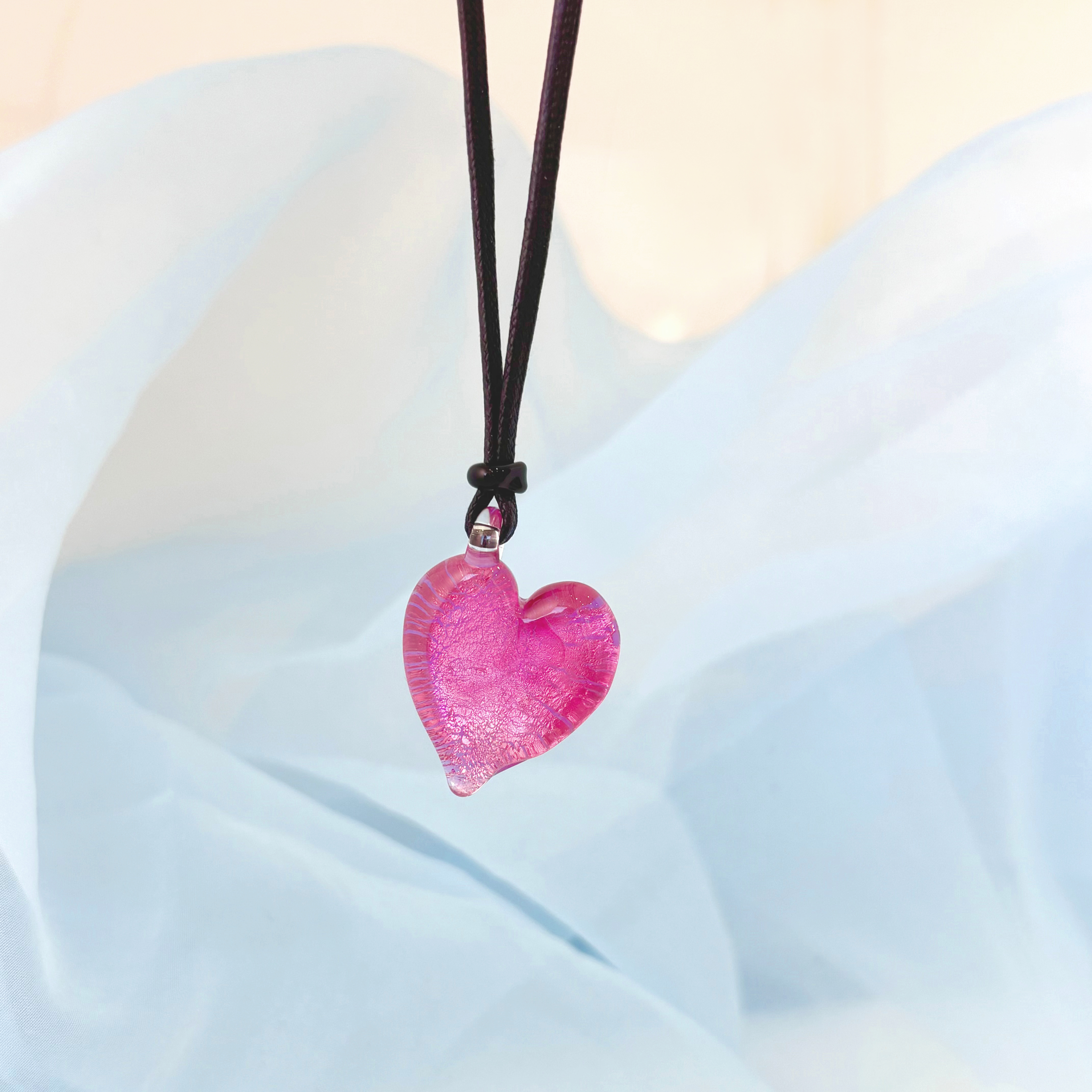 ろうびき紐ペンダント(ハート型)ピンク