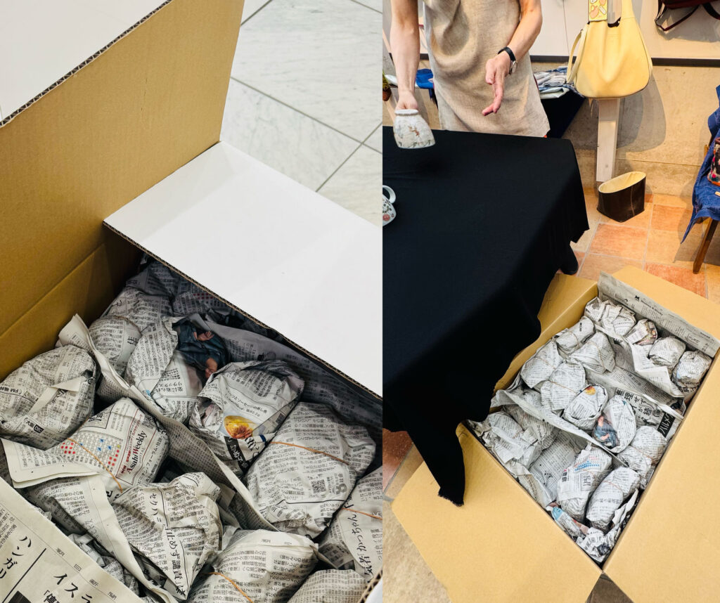 到着したばかりの作品を開封。デリケートな作品を扱う緊張感と、新作に出会う高揚感が入り混じり、梱包を開く手にも自然と力が入ります。