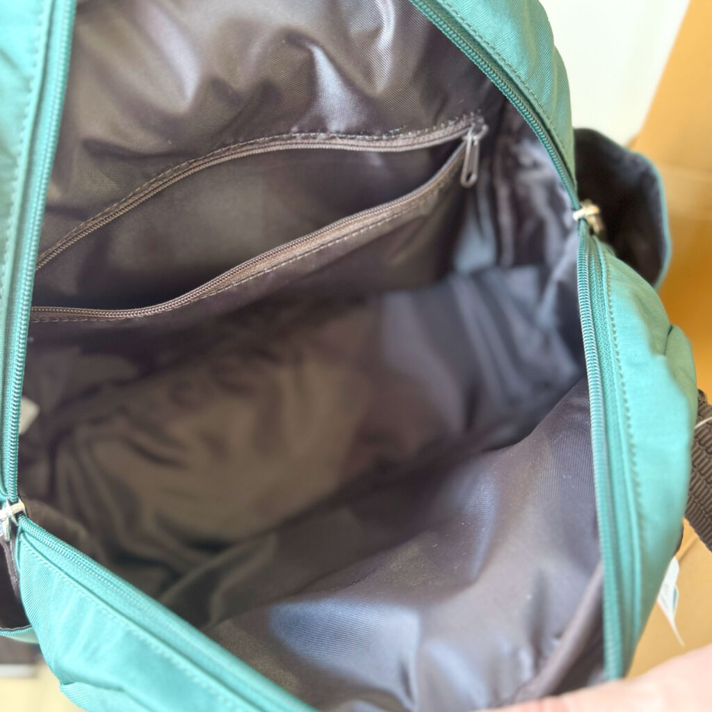 一つ目は、ポケットがたくさん付いた、少し横長のコロンとしたフォルムのリュック。