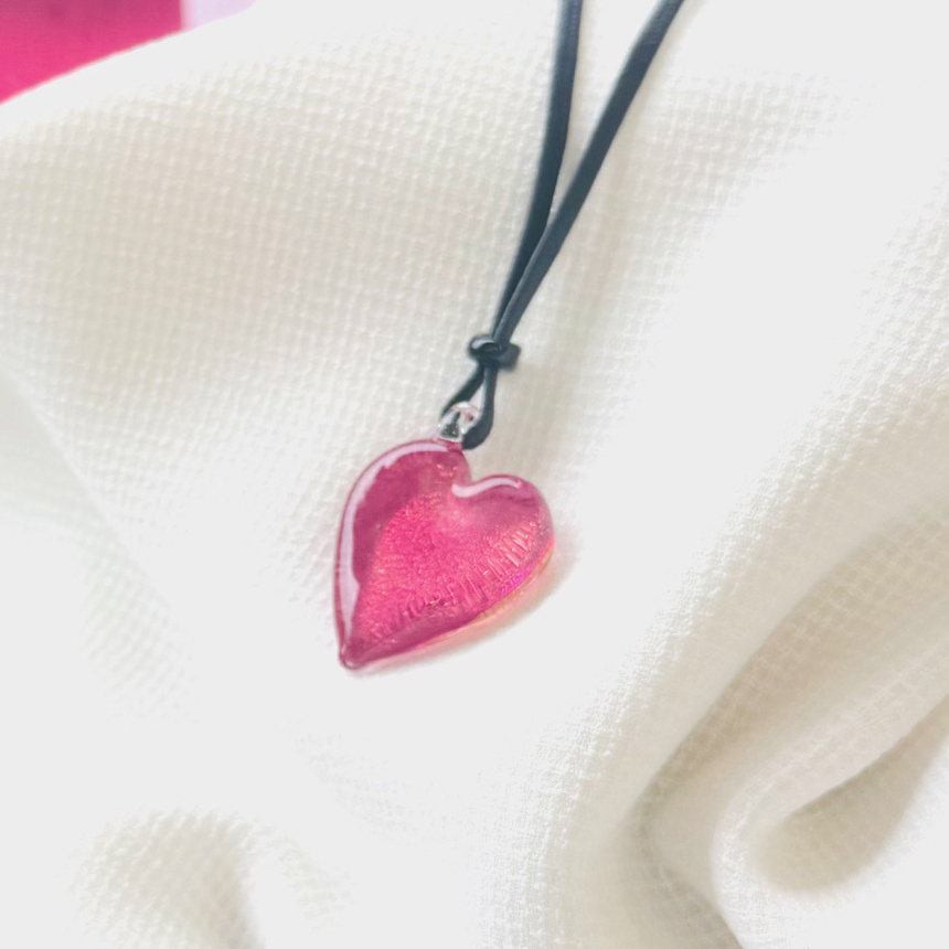 ろうびき紐ペンダント(ハート型)ピンク