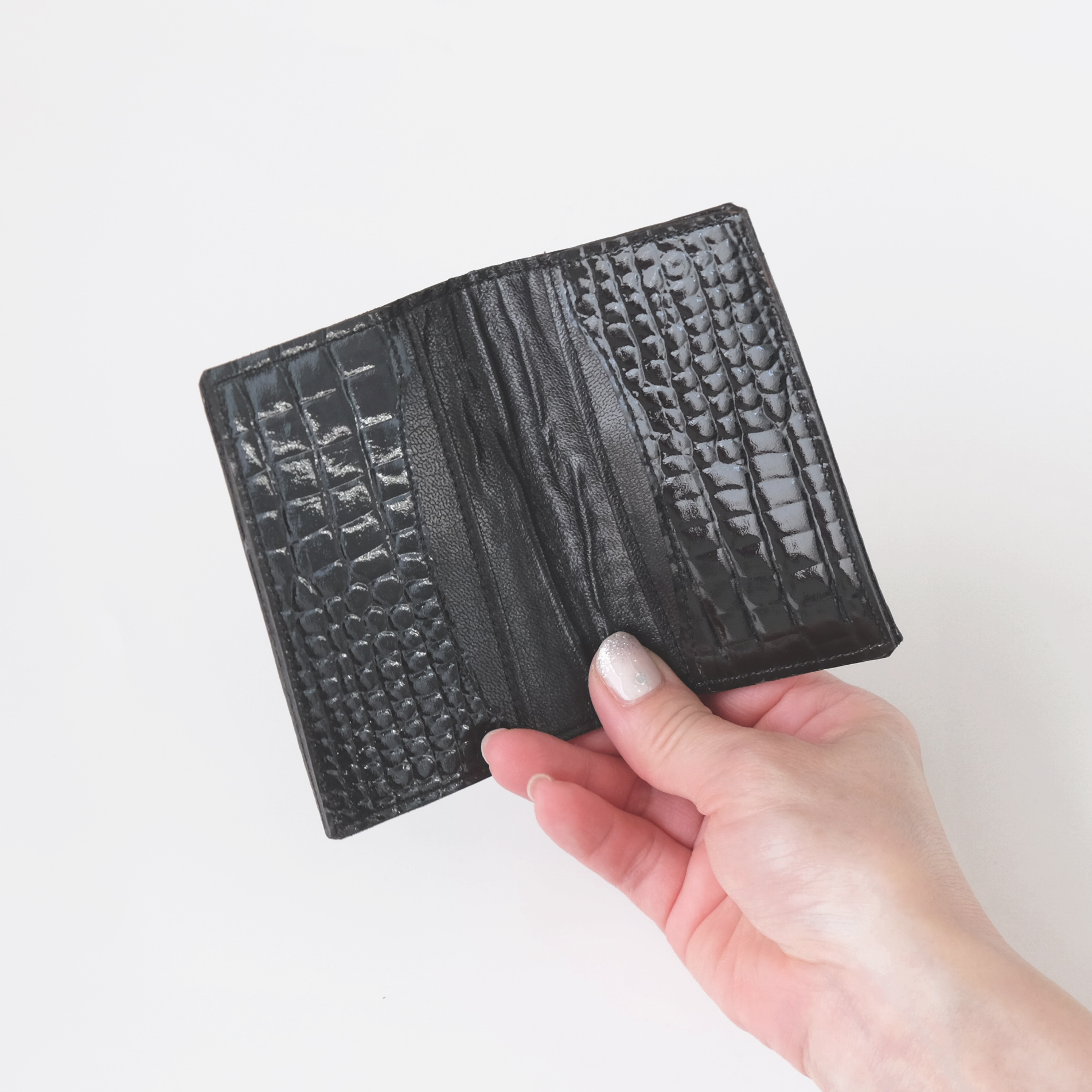 二つ折りカード入れ(名刺入れ)エナメルブラック