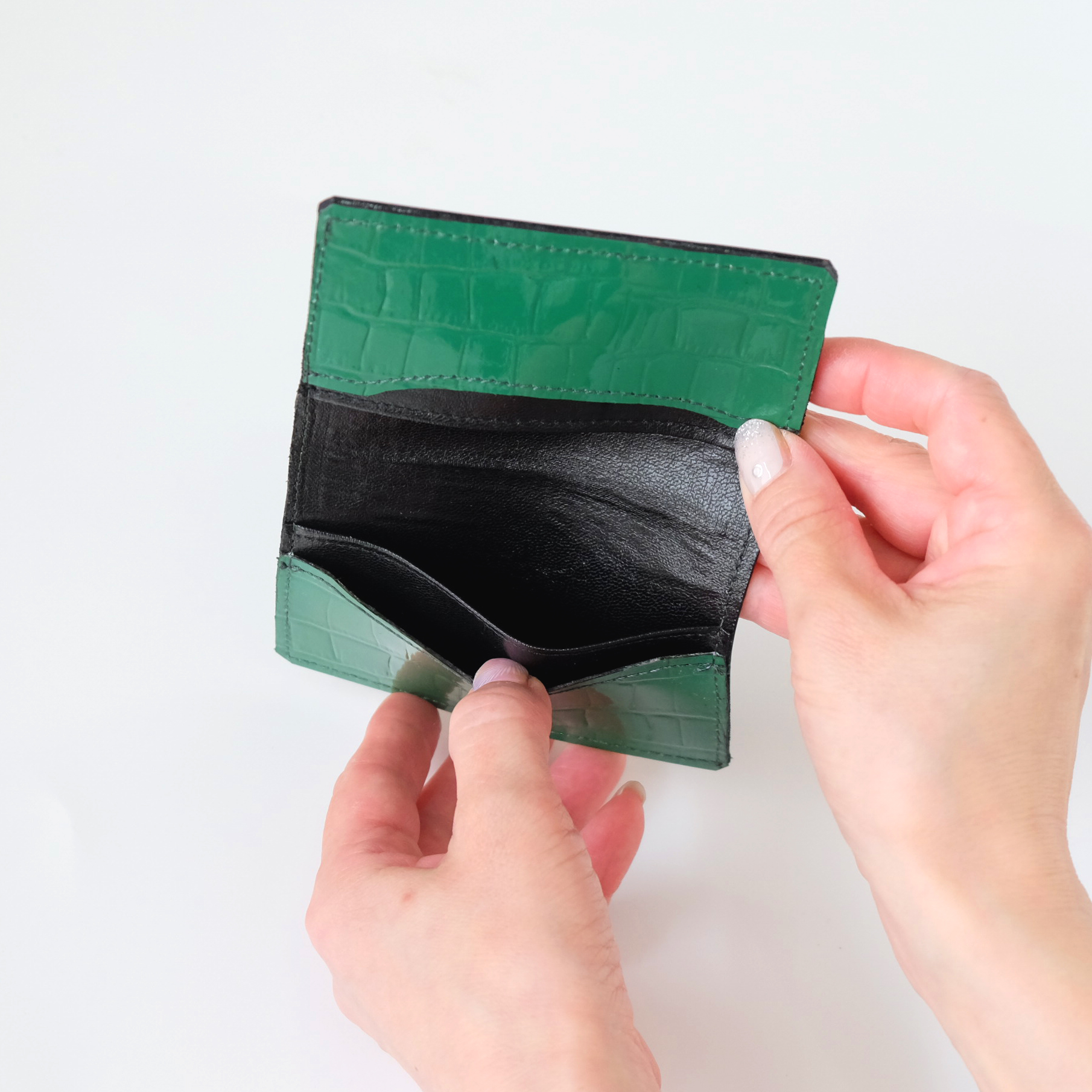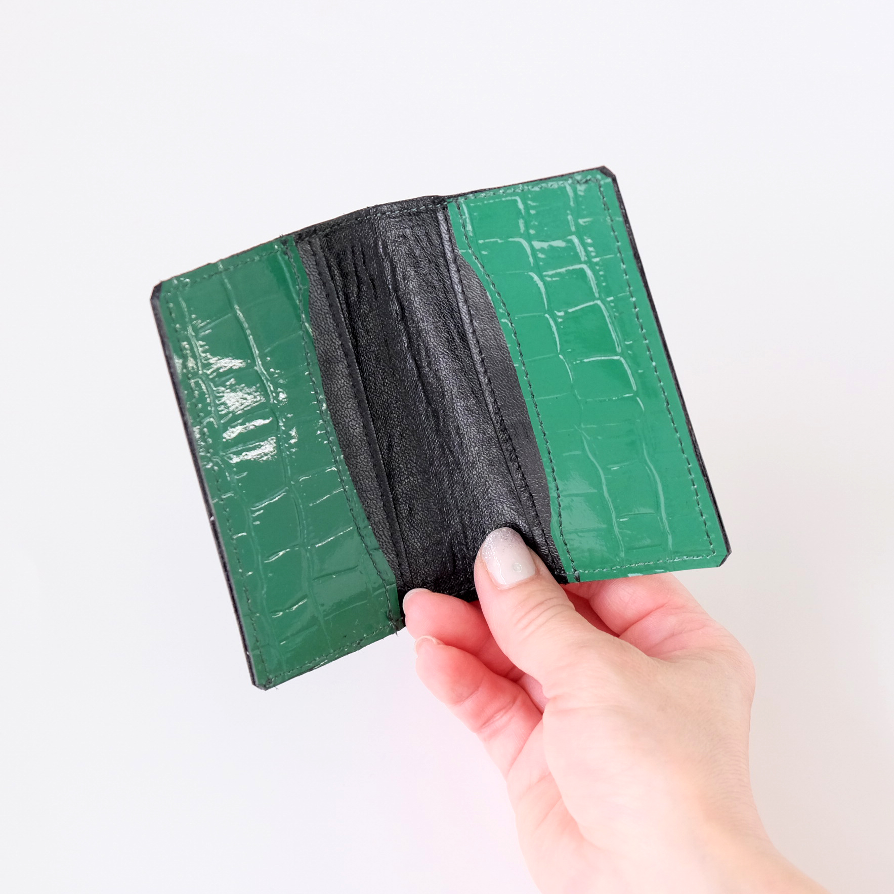 二つ折りカード入れ(名刺入れ) エナメルグリーン