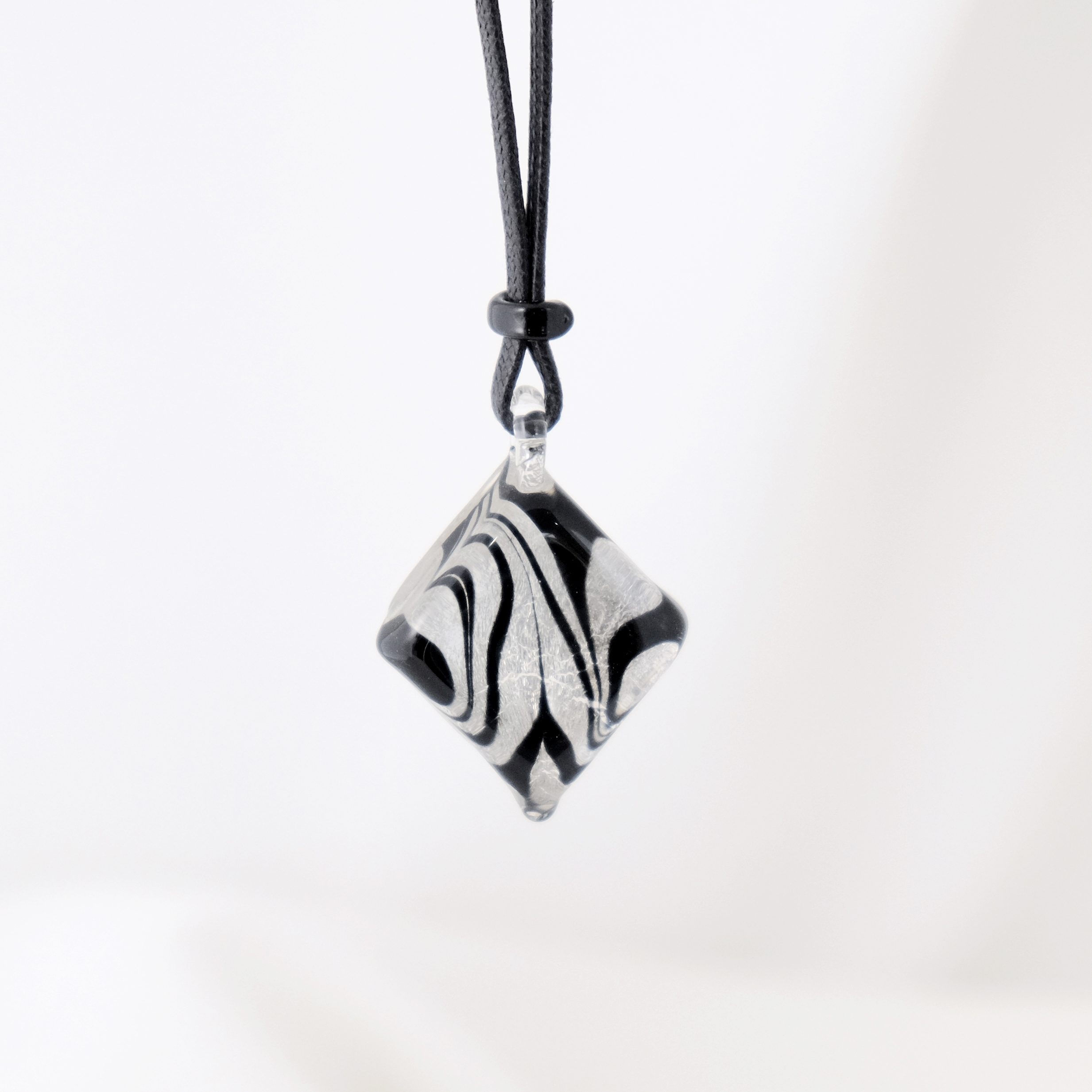 ろうびき紐ペンダント(ダイヤ型) 黒・シルバー