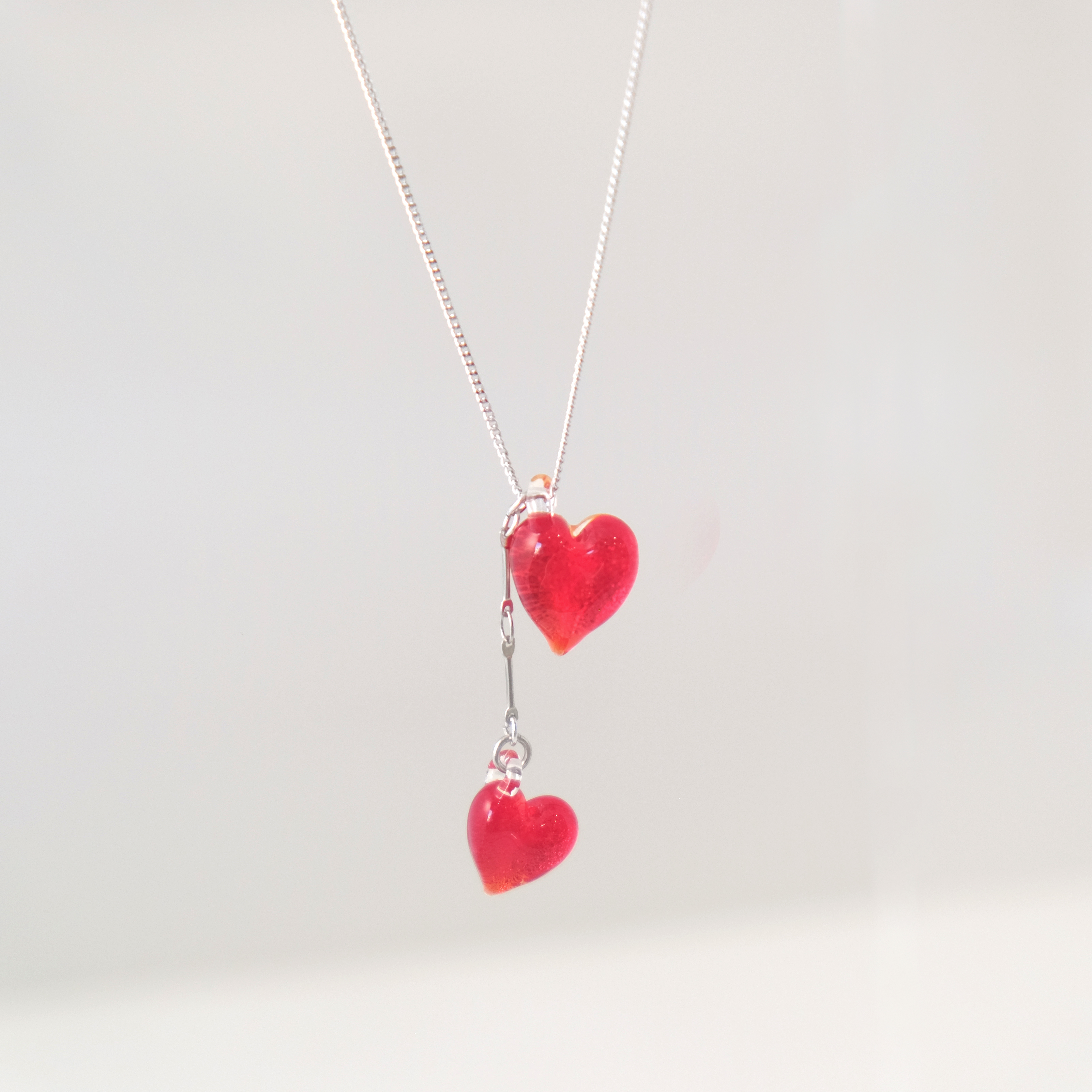 プチペンダント2連 ハートレッド