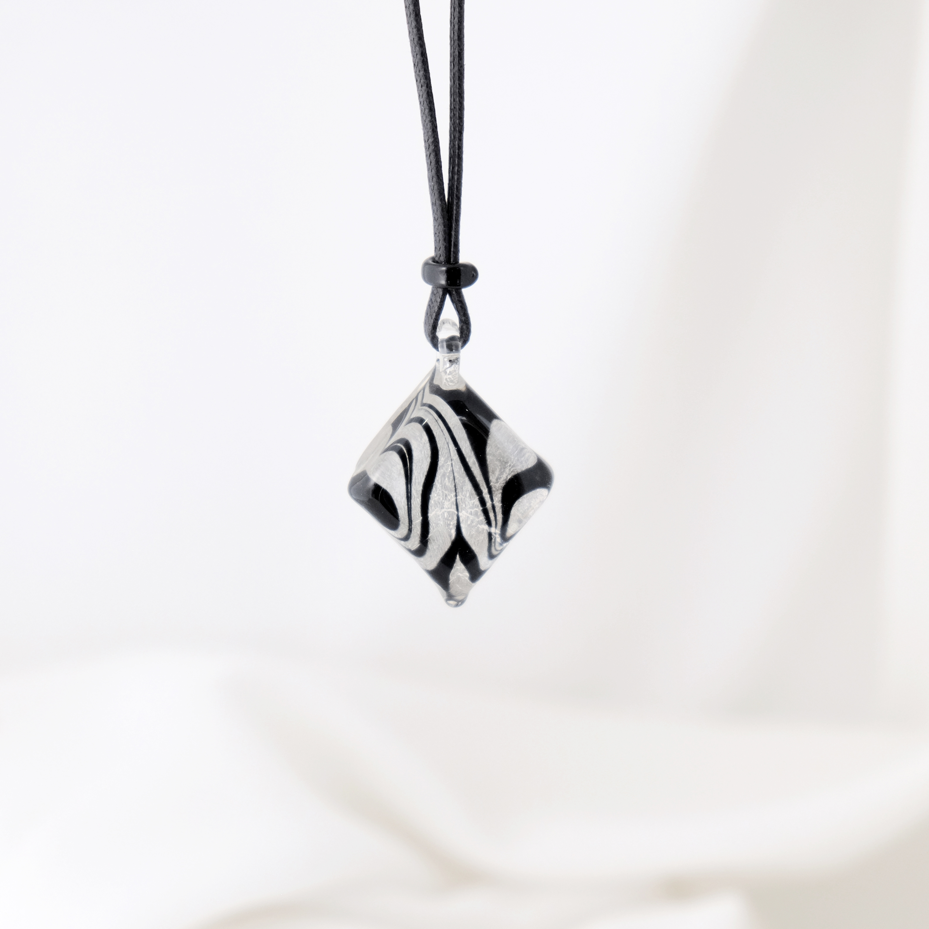 ろうびき紐ペンダント(ダイヤ型) 黒・シルバー